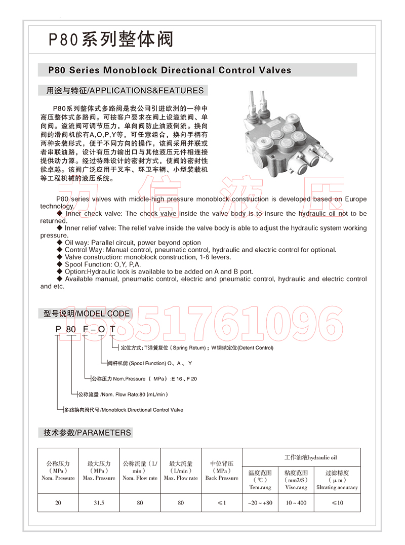 主营产品: 液压多路阀、分配器、手动阀、溢流阀、液压附件、动力单元 本网站部分图片来源于网络,如有侵权,请告知删除