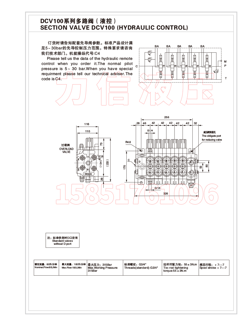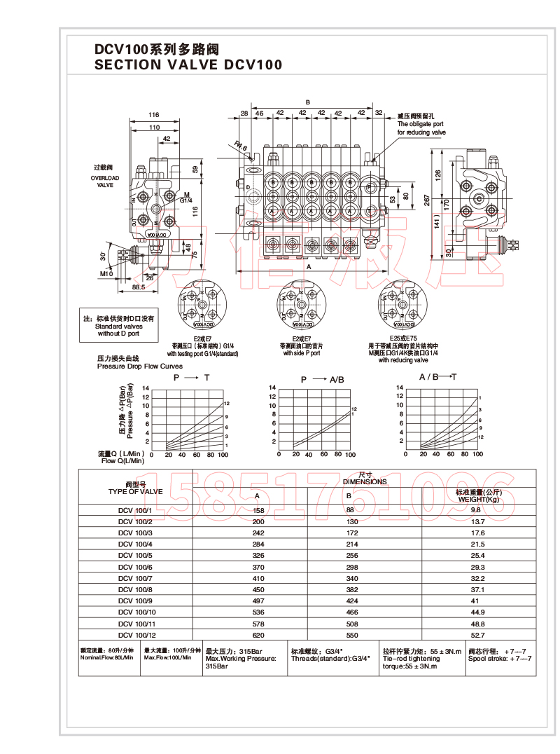 DCV100手动阀钻机提升阀